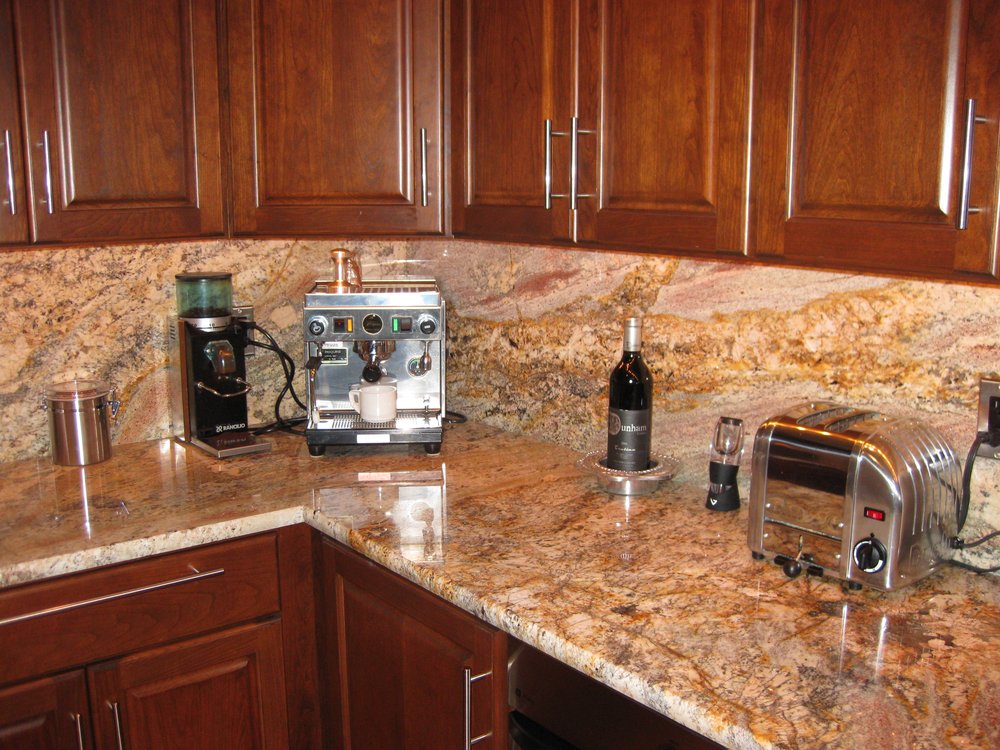 Nowadays, natural stone like granite is becoming popular because it has lot of advantages over other backsplash material. A granite backsplash possesses an inner illumination that has a way of softening the room and giving it a more elegant and sophisticated appearance.