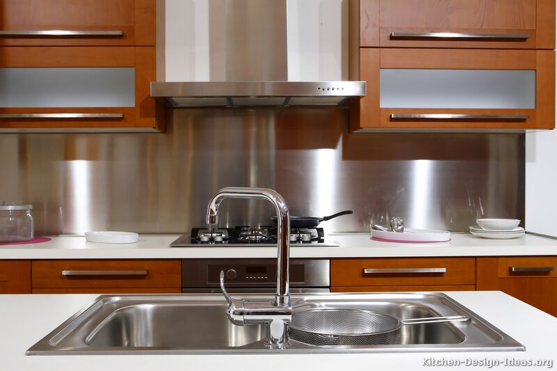 Stainless steel backsplashes, long used in restaurant kitchens are becoming popular in home kitchens because they can give your kitchen a modern streamlined look and are able to blend in well with stainless steel kitchen appliances like the stove, refrigerator and dishwasher.